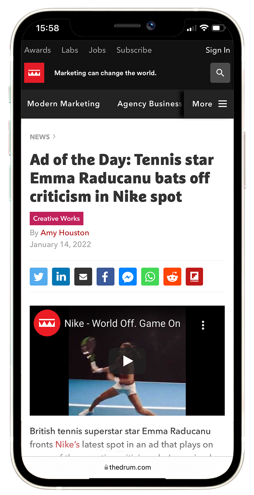 We made Nike’s first film for Emma Raducanu as she was about to compete in the Australian Open. The world’s eyes were on the young athlete since she won the US Open without dropping a set. But the press were giving th young female athlete a hard time. Emma knew she had to shut out the hype and headlines and focus on doing what she does best. Play tennis.
